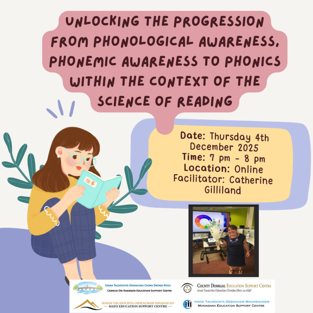 This webinar is hosted by Donegal Education Support Centre. The information you provide when registering will be shared with the host centre and the centre through which you booked and can be used and shared by them in accordance with their Terms and Privacy Policy, which is available on their website.