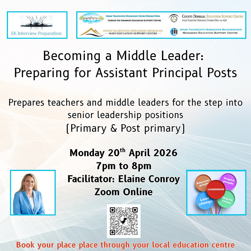 Becoming a Middle Leader: Preparing for Assistant Principal Posts - 26LCSP08 (Facilitator Elaine Conroy)