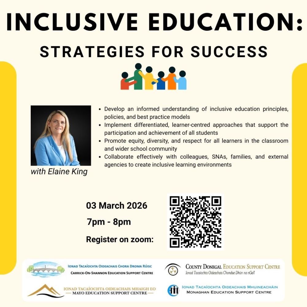 This webinar is hosted by Monaghan Education Support Centre. The information you provide when registering will be shared with the host centre and the centre through which you booked and can be used and shared by them in accordance with their Terms and Privacy Policy, which is available on their website.