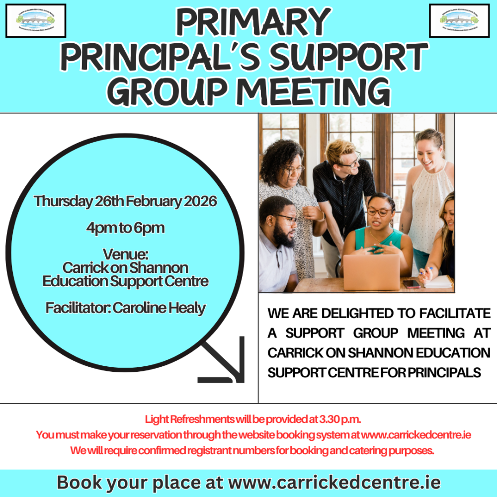 We are delighted to facilitate a support group meeting at Carrick on Shannon Education Support Centre for Principals.
